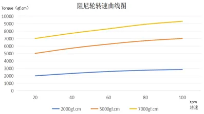 Damper torque (23°C ambient temperature) changes with speed. Typically, torque increases with increasing rpm, as shown in the figure above |