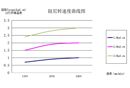 Damper torque (23°C ambient temperature) changes with speed. Typically, torque increases with increasing rpm, as shown in the figure above |