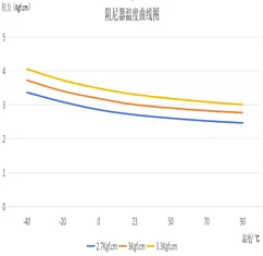The torque of the damper (speed: 20r/min) changes with changes in ambient temperature. Typically, torque increases at lower temperatures and decreases at higher temperatures, as shown in the graph above |