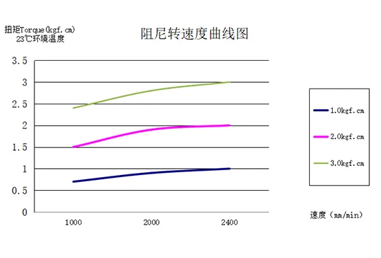 Damper torque (23°C ambient temperature) changes with speed. Typically, torque increases with increasing rpm, as shown in the figure above |